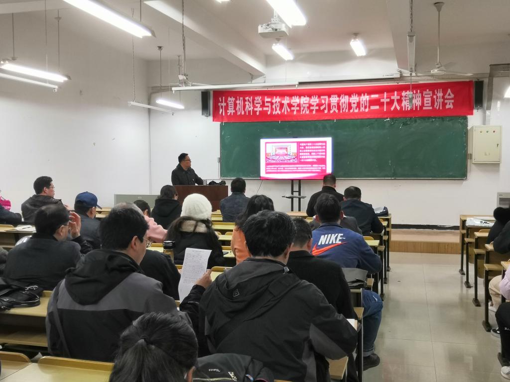 为深入学习宣传贯彻党的二十大精神,不断推动党的二十大精神往深里走、往心里走、往实里走,3月20日下午,学院组织开展党的二十大精神学习交流活动,学校学习宣传贯彻党的二十大精神宣讲团成员、马克思主义学院青年教师陆春晖应邀做专题辅导,与会师生交流学习体会。学院全体教职工和学生代表参加,活动由院党委副书记、纪委书记、副院长、韩军书主持。