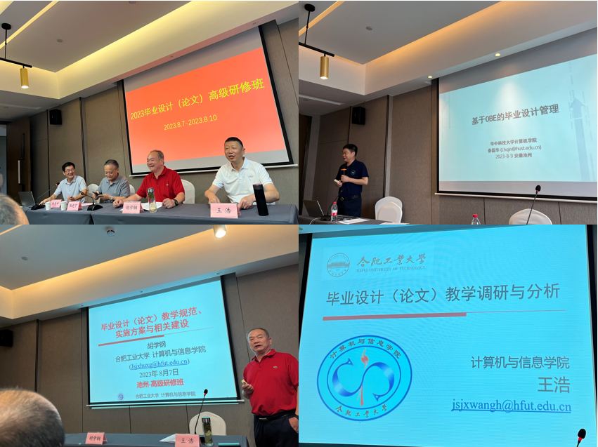 8月7-10日,我院副院长程泽凯、计算机科学技术系副主任陆勤、物联网工程系副主任卫琳娜参加了安徽省高校信息类专业“2023毕业设计(论文)高级研修班”。程泽凯应邀做《专业认证背景下本科毕业设计教学规范研究与实践》主题报告。
