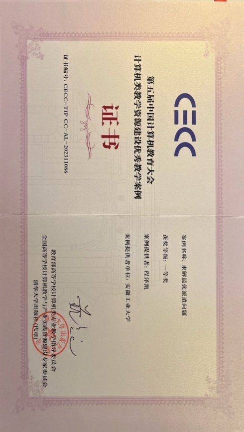 12月1日-3日,第五届中国计算机教育大会(CECC)在福建厦门国际会议中心召开。会上,计算机类教学资源建设论坛公布了入围优秀计算机类教学资源建设课程配套资源与教学案例的评选结果。我院程泽凯老师的《求解最优派遣问题》荣获“计算机类教学资源建设优秀教学案例”一等奖,这是我院教师首次获奖。