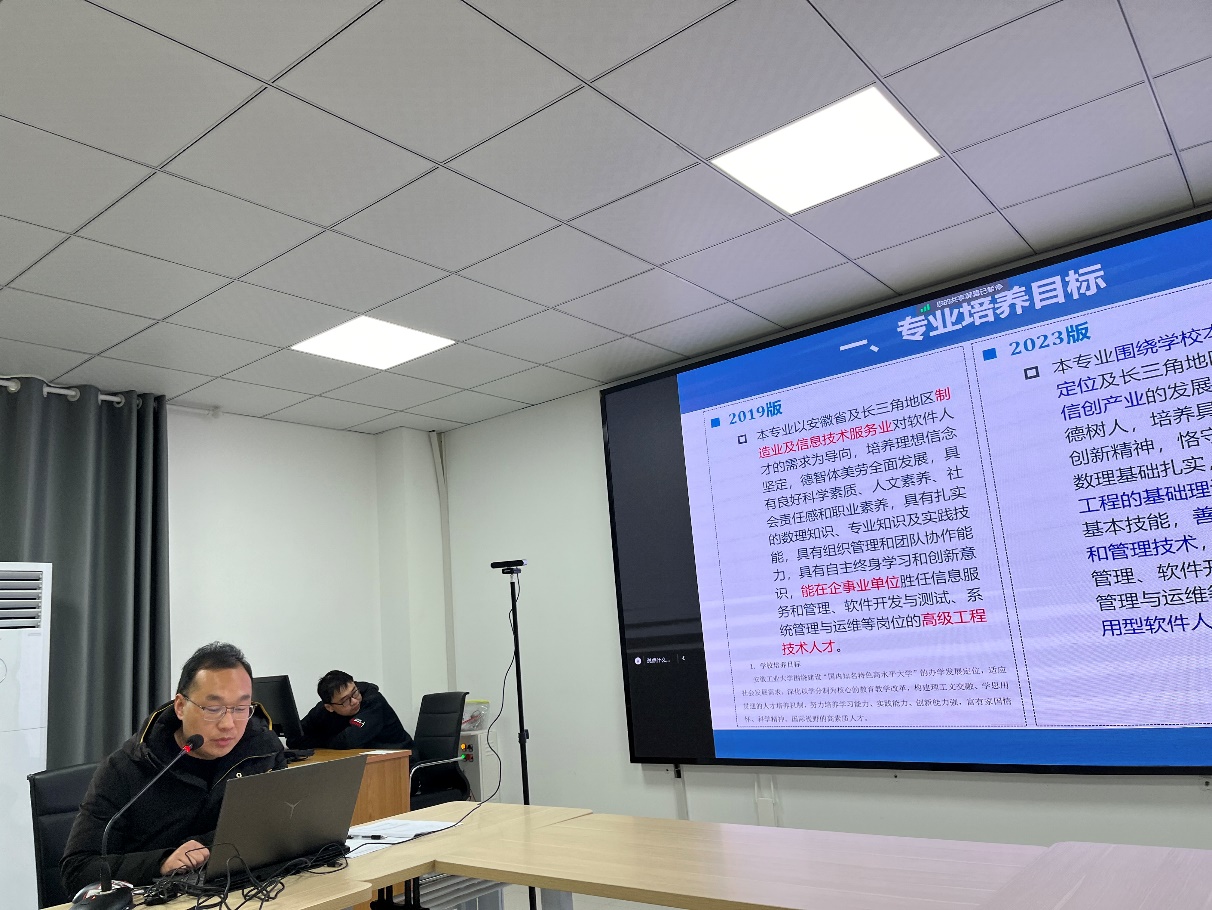 蒋宗礼教授、胡学钢教授、王浩教授等三位专家线下参与,强彦教授、叶志伟教授等两位专家在线上通过腾讯会议参与,对培养方案中的痛点与难点问题进行精准指导,五位专家结合各专业汇报情况,建议从专业特色、培养目标、毕业要求分解,复杂工程问题、综合实践环节优化,以及适应包容性,净零碳要求,批评性思维,创新,第一性原理等新要求进一步完善培养方案,并提出了有针对性的建议。