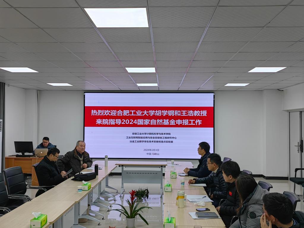 2024年2月3日,学院召开了2024年国家自然科学基金申报辅导会议,邀请了合肥工业大学胡学钢教授和王浩教授来院指导,院长吴宣够、副院长黄俊和程泽凯以及相关申报教师参加。