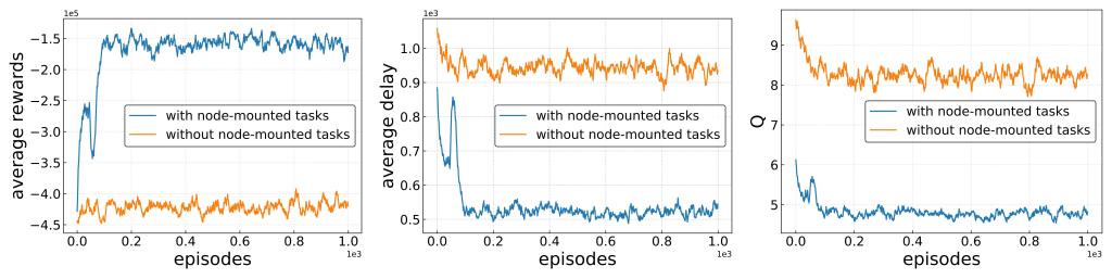 (节点挂载任务对总体性能、网络延迟、以及队列长度的影响)