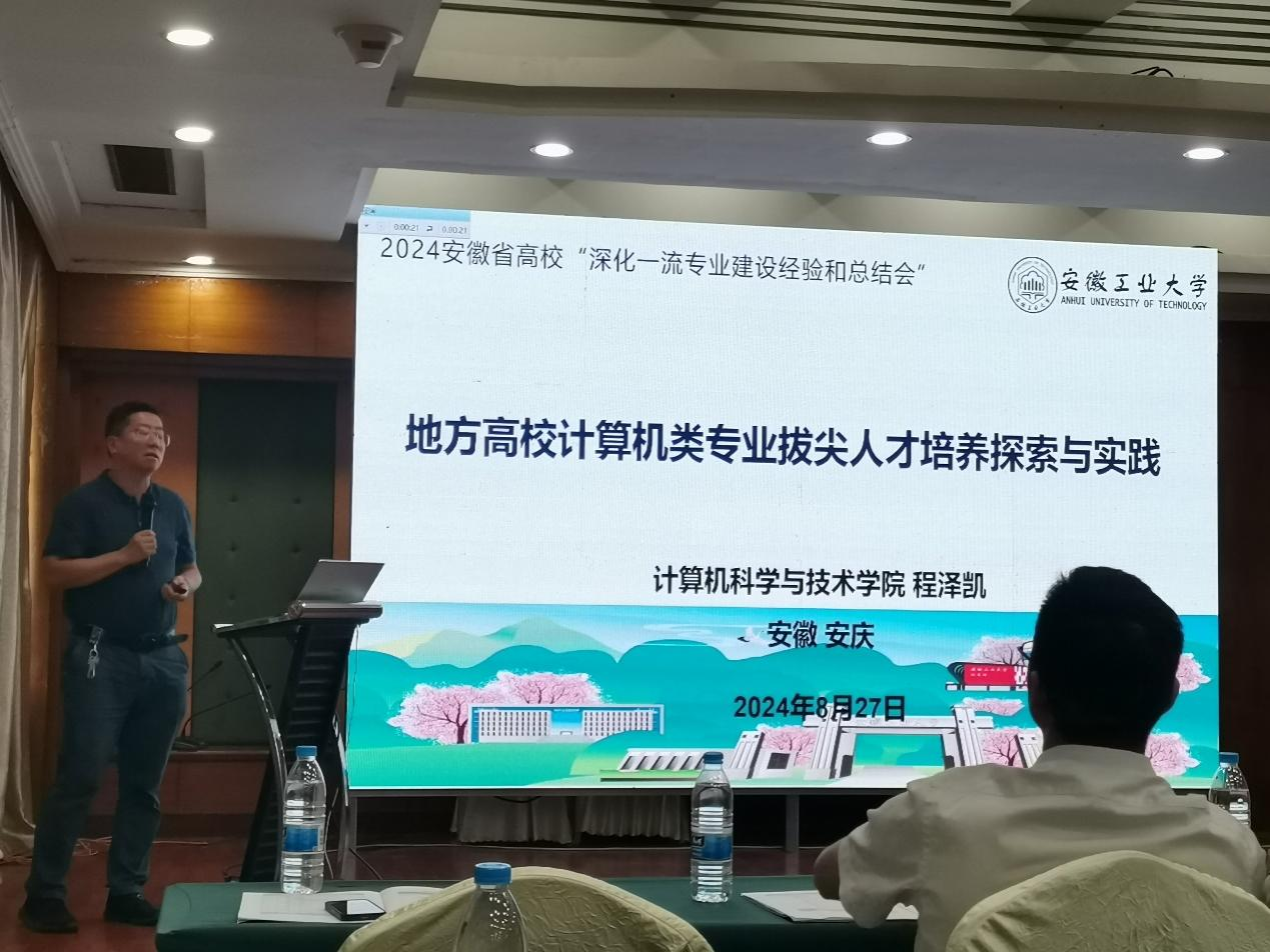 8月27-28日,我院副院长程泽凯,计算机系主任李沁,软件系主任薛伟参加安徽省高校深化一流专业建设经验交流和总结会。程泽凯作了《地方高校计算机类专业拔尖人才培养探索与实践》主题报告。本次专题研讨会以“加强交流合作、寻找问题和差距”为主题。