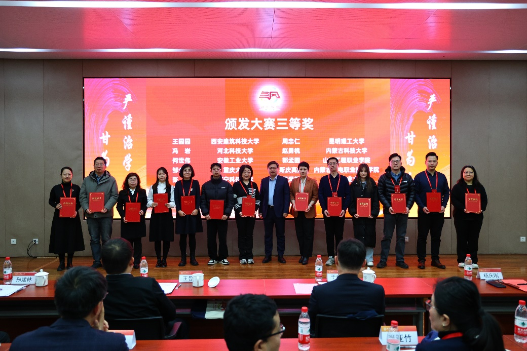 12月29日,我院《数据结构》课程团队(程泽凯老师、秦飞老师、储岳中老师)在第一届新时代高校“钢筋铁骨”育人共同体课程思政教学创新大赛决赛中获三等奖。本届比赛由中国冶金教育学会、新时代高校“钢筋铁骨”育人共同体主办,比赛由北京科技大学举办。来自“钢筋铁骨”育人共同体内高校的33支参赛团队齐聚京城,共同探讨产教协同育人,交流课程思政教学创新成果。