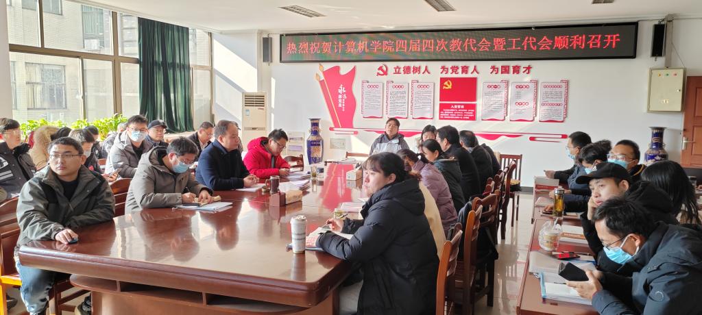 1月13日,437ccm必赢国际版第四届四次教代会暨工代会在逸夫楼202会议室召开。学院党委书记韩军书、副院长(主持工作)黄俊、副院长程泽凯出席会议,31名正式代表以及15名列席代表参加了会议。会议由韩军书主持。