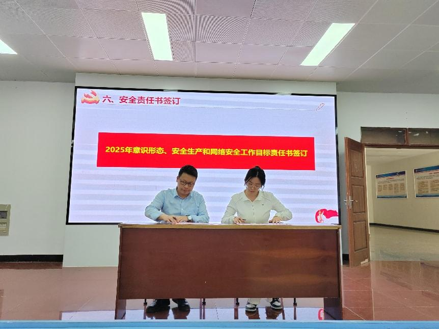 会议还通报了学院近期的工作情况和在教学科研等方面取得的荣誉和成就,各分管领导就近期工作进行了布置,学院党政主要领导与各党支部书记、系(室、中心)主任签订了《2025年意识形态、安全生产和网络安全工作目标责任书》,进一步压实安全责任,确保各项工作平稳推进。