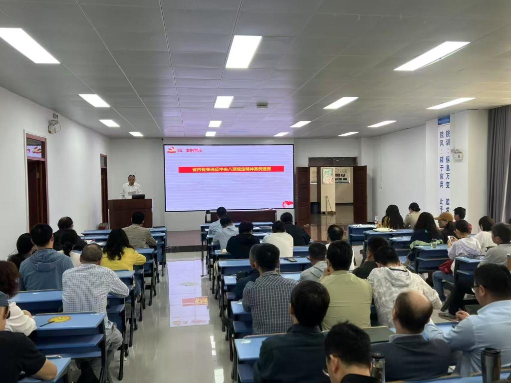 同时,传达了学校近期召开的全面从严治党会议、安全稳定工作会议、本科教育教学审核评估、招生宣传工作启动会等有关会议精神;学习了学校有关绩效工资实施办法、教职工考勤及请销假规定、科研项目、经费管理办法等制度,集中传达了省纪委通报的5起违反中央八项规定精神典型案例。会议要求全体教师要时刻牢记自己的职责使命,严格遵守学校各项规章制度,规范言行举止、提升业务能力,以更加饱满的热情和更加严谨的态度投入到教育教学工作中,为学院的高质量发展贡献力量。
