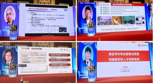 在特邀报告环节,专家重点围绕人工智能时代计算机教育、信息技术发展及人才培养模式展开探讨,分享了改革与实践经验。中国科学院计算技术研究所所长、党委书记陈熙霖研究员作了《人工智能时代计算机教育的思考》的报告,鹏城实验室副主任石光明教授作了《AI时代的信息技术及人才培养模式》的报告,北京大学计算机学院副院长郭耀教授作了《“101计划”牵引下的计算机学科人才培养改革实践》的报告,江西财经大学副校长方玉明教授作了《江西财经大学学科转型与人才培养》的报告。