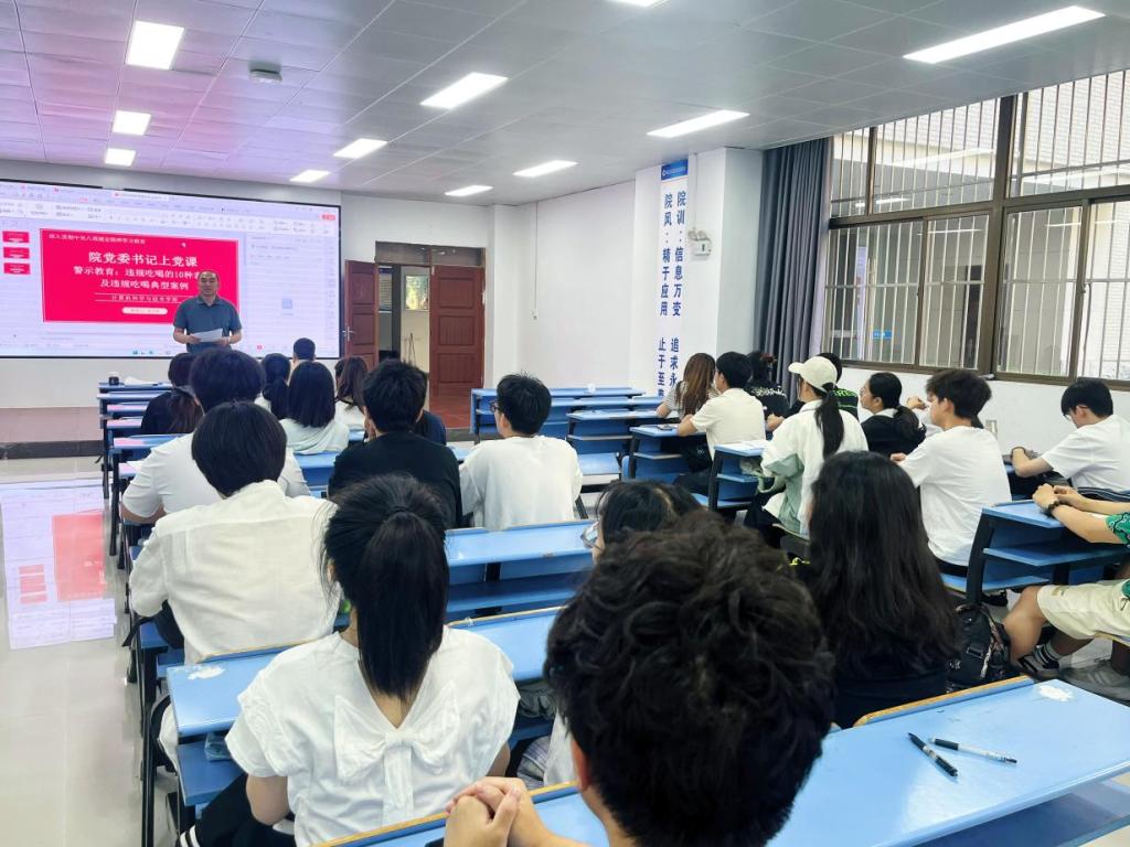 为深入贯彻中央八项规定精神学习教育,强化学生党员纪律规矩意识,6月5日上午,437ccm必赢国际版学生第三党支部开展专题党课学习活动,支部委员、全体学生党员参会,院党委书记、支部委员夏玉钦担任主讲。