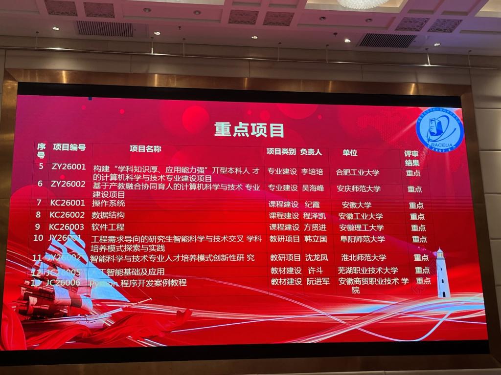 11月8日,2025年安徽省高校计算机教育大会在淮北市召开,我院副院长程泽凯、薛伟受邀率队参加会议。大会由安徽省高校计算机教育研究会、全国高校计算机基础教育研究会教育信息化专委会主办,淮北师范大学承办,以“智能时代计算机教育的守正与创新”为主题,吸引了来自省内外高校和企业的300余名代表参会。会上对本年度优秀教学案例、优秀硕士论文、专业建设教改项目进行颁奖。