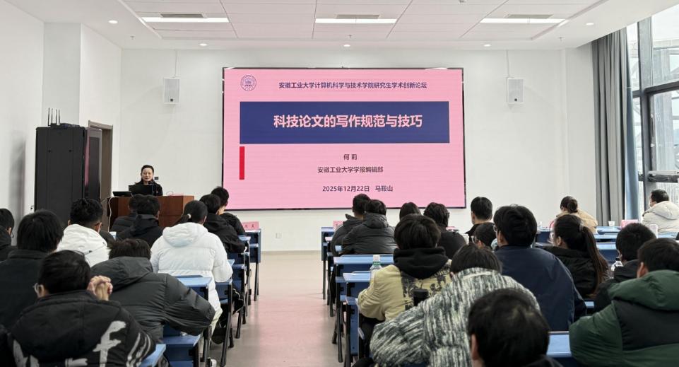 夏玉钦首先向出席论坛的专家、评委和师生代表表示欢迎和感谢。他指出,研究生学术创新论坛是学院精心打造的学术品牌,也是人才培养的重要平台。他鼓励同学们珍惜机会,希望大家能够立足国家战略需求,聚焦计算机学科前沿问题,将论文写在祖国大地上,把研究做在产业需求处,充分展示研究成果,在科研道路上脚踏实地,努力取得更多高质量的学术成果。随后,《bwin必赢线路检测学报(自然科学版)》常务副主编何莉老师应邀做了题为《科技论文的写作规范与技巧》专题讲座,围绕科技论文的结构、写作要点与常见问题,为在场研究生提供了系统详实的指导。