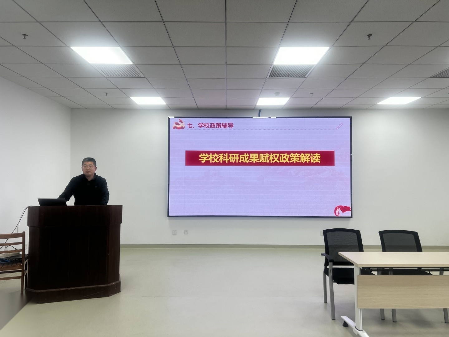 3月23日下午,学院召开了2026年第二次全院教职工大会。学院领导班子、全体教职工和学生代表参加,会议由学院党委书记夏玉钦主持,科研院副院长郑近德应邀作专题辅导报告。