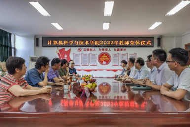 青年教师代表黄俊、陈峰、陈哲、王越为退休教师们献上鲜花,向退休教师送上真挚的祝福,表达崇高的敬意。他们表示,一定不会辜负荣休前辈的期望,传好接力棒,培养更多的计算机人才。