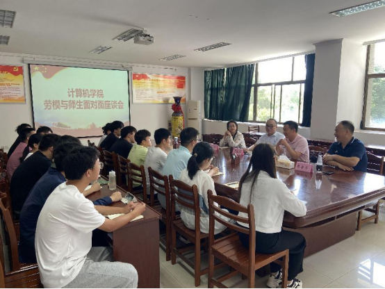 5月22日上午,计算机学院在逸夫楼202会议室举行“劳模与师生面对面”座谈会。安徽省劳动模范高亚飞应邀出席,校团委书记王菁、党委书记单桂锋、团委书记夏成龙及学院师生代表参加座谈,座谈会由院党委副书记、副院长、纪委书记韩军书主持座谈。