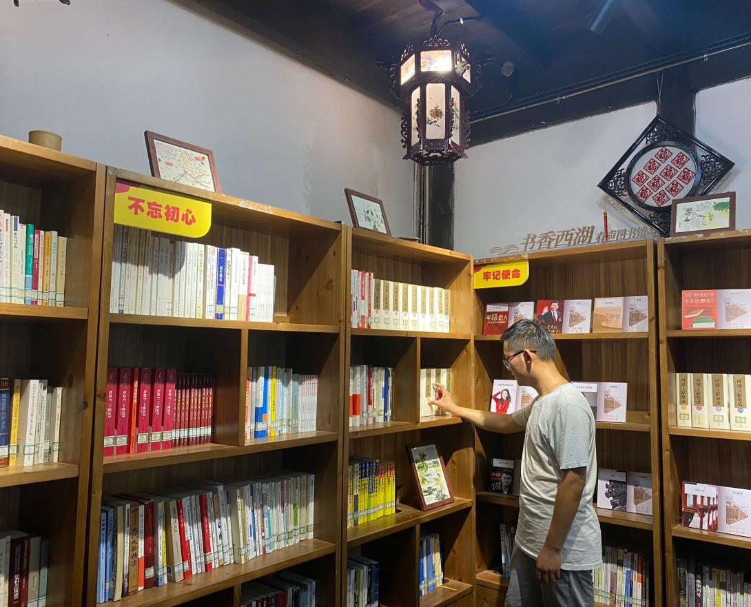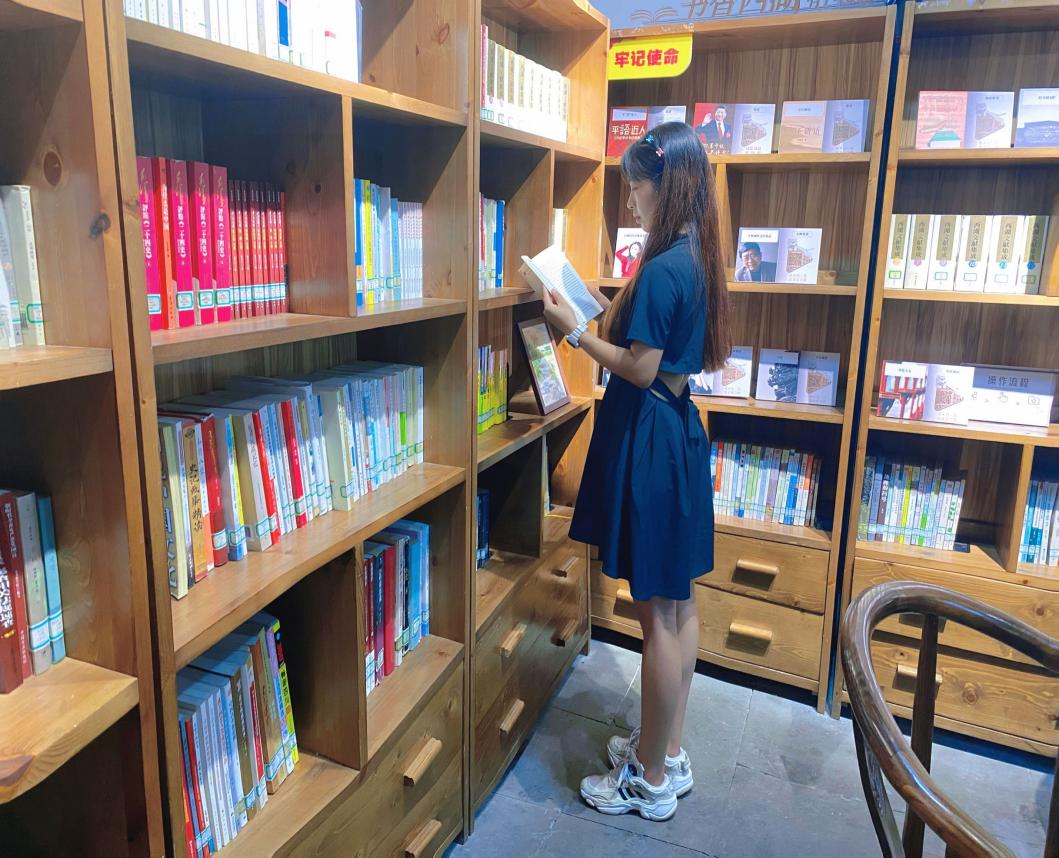 实践队员吴禧龙参观红色经典著作墙,他说到:“在党的百年华诞之际,我们每一位预备党员都要重温入党誓词、重忆入党经历、重问入党初心——对自己从外到内、从工作到思想、从生活方式到理想信念,来一次彻底的灵魂拷问,来一次全面大体检。”