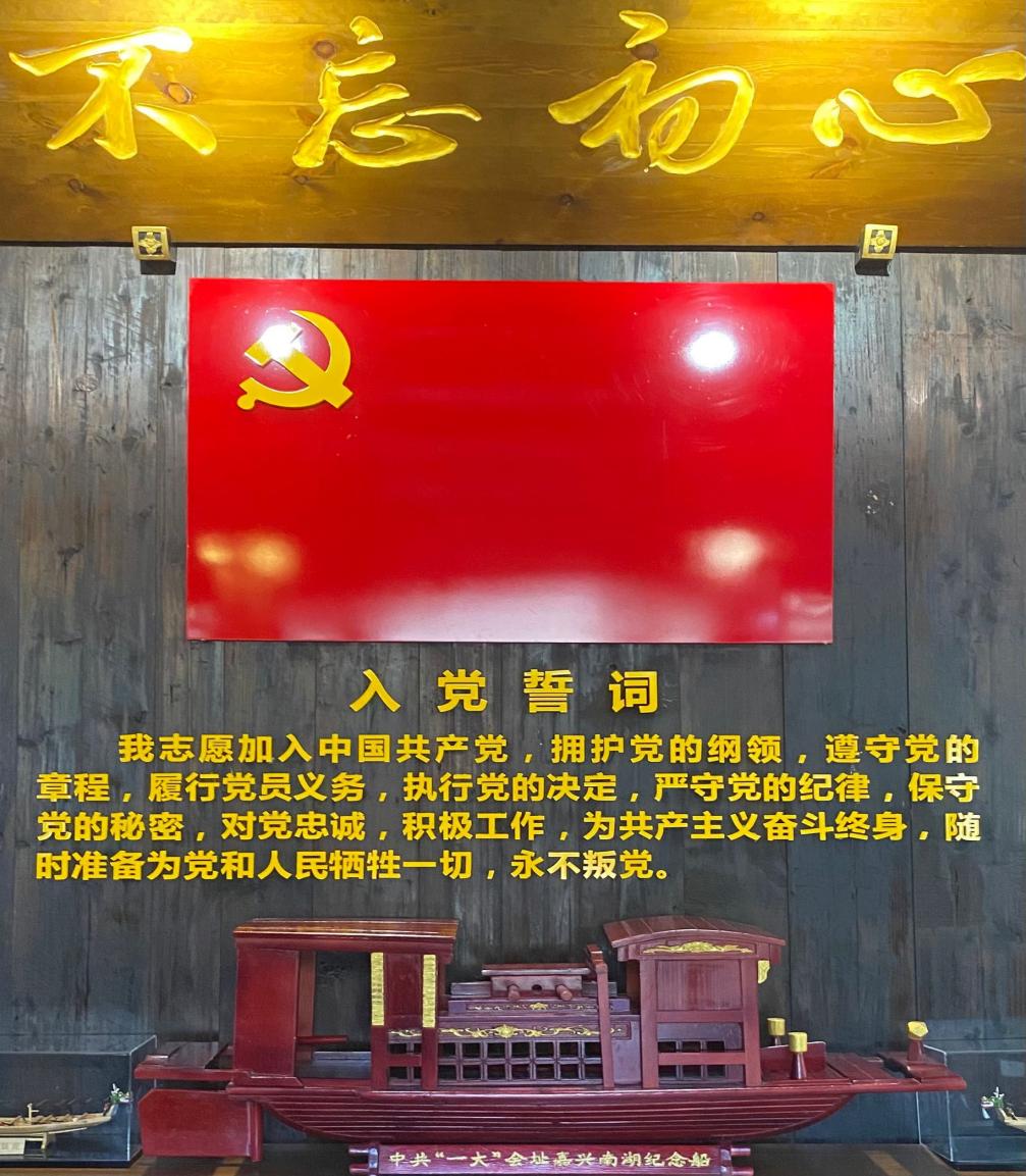 实践队员走进展馆,在党旗下重温入党誓词。“我志愿加入中国共产党,拥护党的纲领,遵守党的章程,履行党员义务,执行党的决定,严守党的纪律,保守党的秘密,对党忠诚,积极工作,为共产主义奋斗终身,随时准备为党和人民牺牲一切,永不叛党。”铿锵的誓词,坚定的承诺,让每一位实践队员员的心灵再次受到震撼和洗礼。