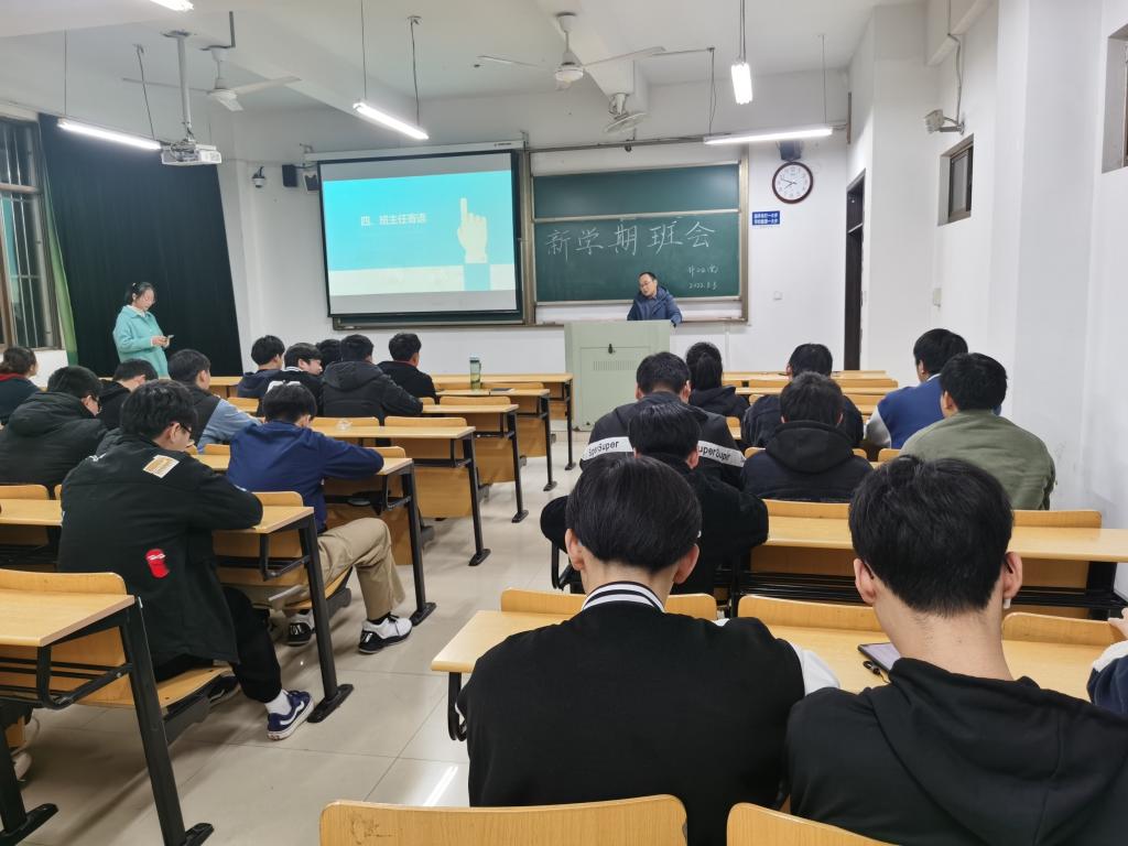最后,班主任徐宏老师表示本次班会形式非常好,内容充实,班委工作扎实,同学发言很精彩。他要求要进一步明确目标,分段分期做好学习和职业生涯规划;成绩出现不合格的同学要积极赶上,抓紧复习,及时弥补;加强体育锻炼,对于体测有困难的同学要制定锻炼计划,加强锻炼,提升身体素质;要严格遵守学校疫情防控规定,非必要不外出,入春应注意气候变化,注意个人卫生。会后徐宏老师与班委就如何开展本学期班级工作进行了交流,与个别同学进行了谈话。