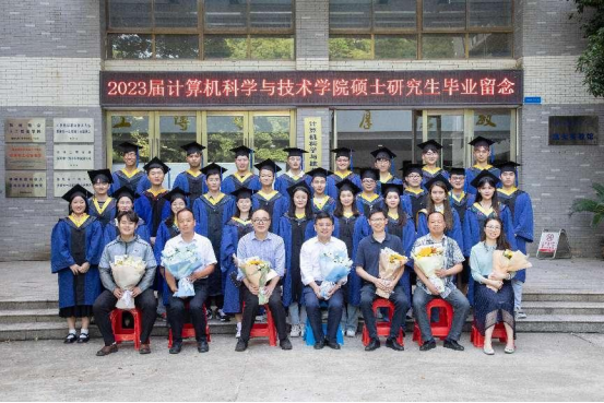 2023届全体硕士毕业生也用一份特殊的礼物表达了对学院的感恩和祝福。上书“编码梦想,链接未来,情系计科,感恩启航之地”横幅,并向学院领导和老师献上毕业花束,以此表达对学院培养的感激和对未来的美好期许。