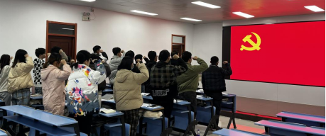 接下来,为激励支部党员坚定理想信念,增强党性觉悟,全体党员重温入党誓词,感悟入党初心。党支部书记林颖庄严领誓,带领支部全体党员面向鲜红的党旗,紧握右拳郑重宣誓,声声入耳、铿锵有力。
