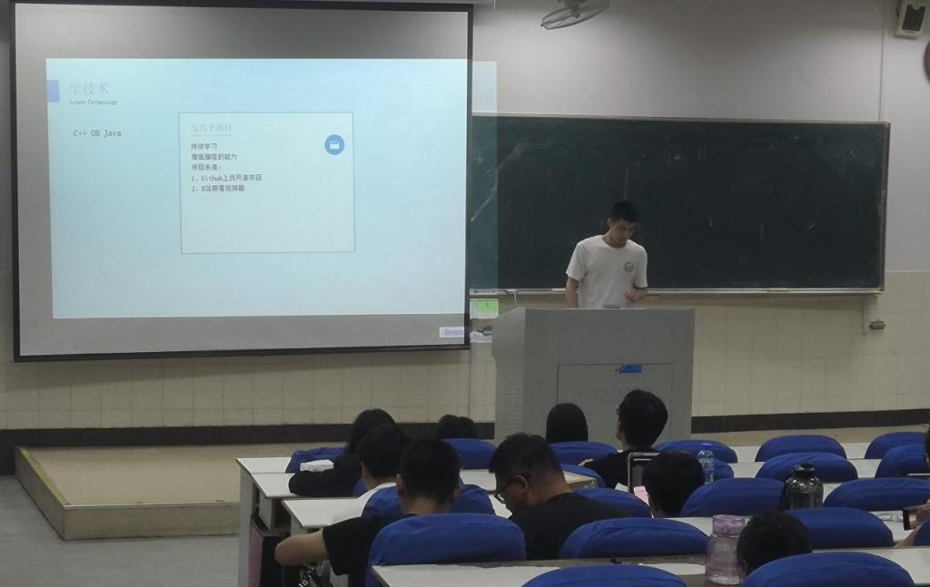 本次分享活动邀请了2020级成功签约深信服科技股份有限公司的陈子驹同学、即将到中国地质大学读研的黄志缘同学。陈子驹结合自身求职经历,围绕职业选择、企业甄别、岗位搜索、简历制作、笔面技巧以及能力提升等方面分享求职经验,提醒同学们要提早谋划、精研细判、找准定位,明确企业招聘需求、合理评估自身能力、适时转变调整心态,在求职路上发现自我、明确自我、提升自我,实现自身价值。黄志缘从自身备考经历出发,针对考研择校、备考方法、复习计划、时间安排、心态调整、复试准备等方面进行深入且详细指导,希望同学们能打破信息差、定期总结复盘、及时分析不足、明晰备考思路和考研规划。会后,两位学长耐心答疑解惑,现场学习氛围浓厚。同学们纷纷表示,分享活动明晰了自身就业考研目标,宛如醍醐灌顶,极大的提升了自信心、决心以及前进的勇气。活动最后,林颖对参与分享的学长表示了感谢,并鼓励全体学生以此为榜样,脚踏实地、不惧挑战、踔厉奋发、笃行不怠。