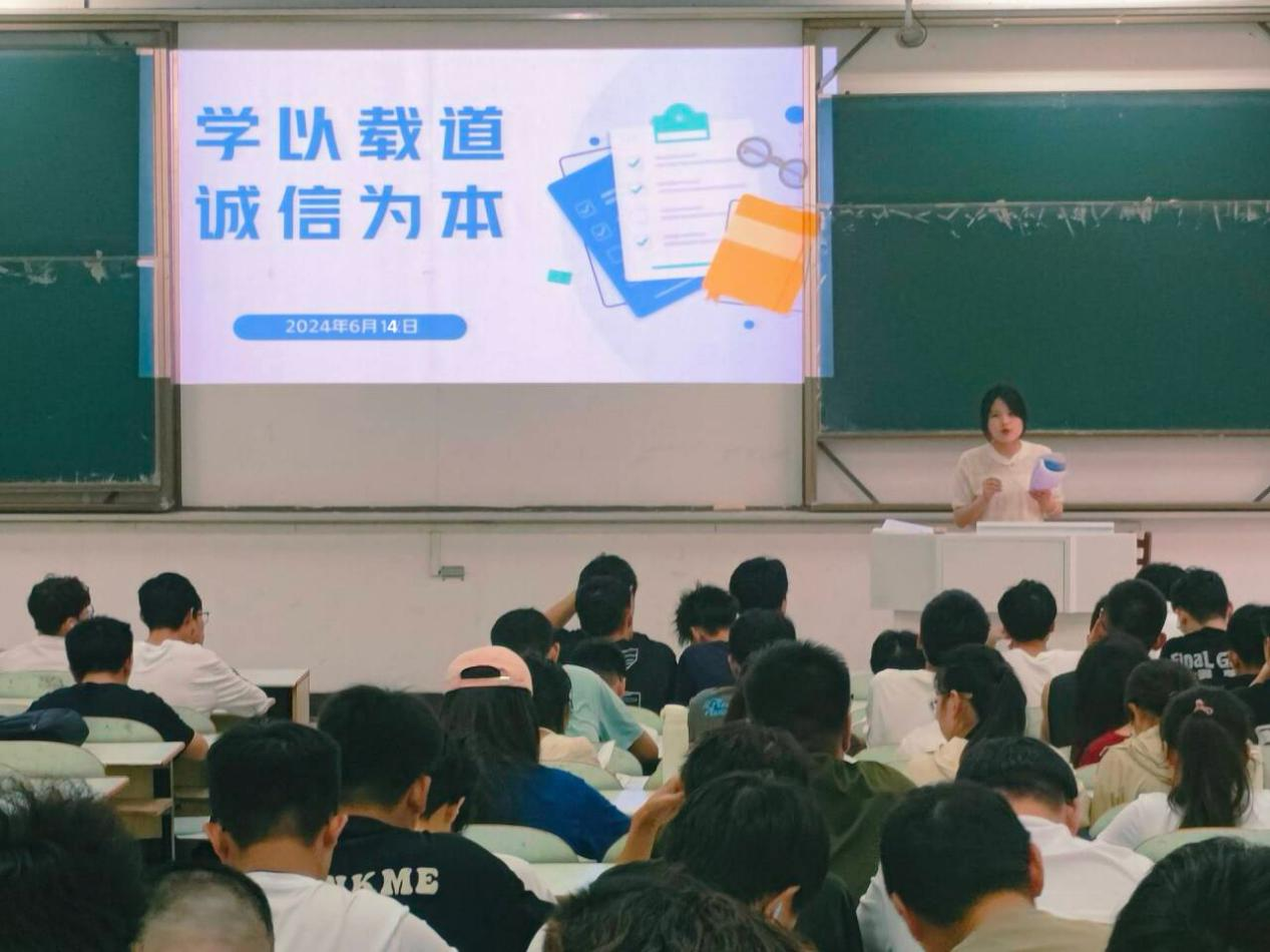 为严肃考纪、端正考风,促进学风建设,引导学生诚信应考,437ccm必赢国际版于6月14日中午12:30在佳山校区教三南201、203组织开展23级诚信考试专题教育,辅导员奚锡珍、朱筱主讲,23级全体学生参加。