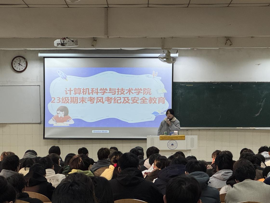 为严明考试纪律,加强学风建设,增强安全意识,确保期末考试各项工作平稳有序推进,12月19日,437ccm必赢国际版在秀山校区阶教101组织开展期末考风考纪及安全教育年级会,辅导员奚锡珍、朱筱和全体23级学生参加。