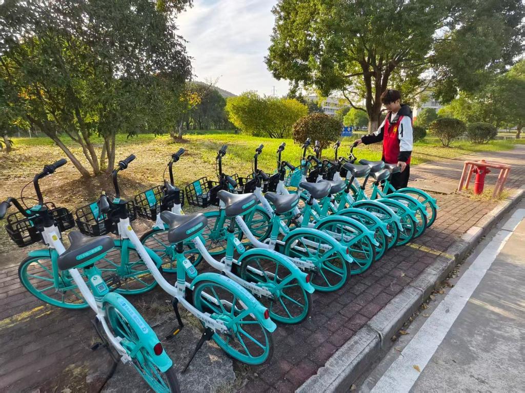 活动当天,志愿者们身着统一的志愿服,在徐康老师的带领下,分为数个小组,奔赴预设的各个区域。他们对散乱停放在人行道、盲道、绿化带旁的共享单车和私人单车进行了集中规整。志愿者们分工协作,有的负责将倾倒的单车扶起,有的负责将停放区域外的单车搬移至指定划线区域内,并按照车型、颜色进行归类,确保车头朝向一致,排列整齐划一。经过近两个小时的辛勤劳动,原本杂乱的停车区域变得井然有序,道路变得宽敞通畅,校园环境焕然一新。