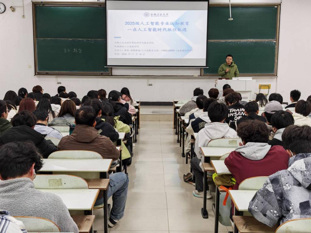 为帮助2025级新生深入了解人工智能专业,明确大学学习规划与未来发展方向,11月18日,计算机学院在教三南201教室成功举办人工智能专业认知会。人工智能专业系主任陈哲担任主讲,全体人工智能专业新生及辅导员参加会议,会议还特邀三位优秀高年级学生代表进行经验分享。