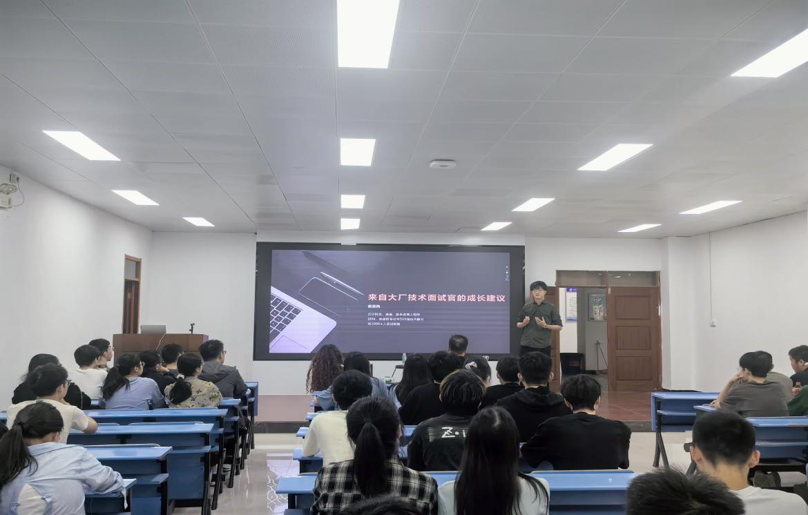史亚风结合自己的在校经历,向学弟学妹们分享了他在大学期间提升专业技能和培养综合素质的经验,同时提出了宝贵的建议。他在发言中特别强调扎实的基础知识、不断创新的思维以及良好的团队协作能力的重要性。在求职能力实训营环节,他结合自身丰富的职场经历和面试经验,深入剖析了当前计算机行业的发展趋势和人才需求特点,详细介绍了大厂技术面试的流程和要求,并针对性地提出了应对策略。与会同学们争相发言提问,表达了在职业规划、面试技巧等方面的困惑,史亚风则一一解答。会后,韩军书向史亚风校友颁发了“bwin必赢线路检测就业创业领航导师”聘书。